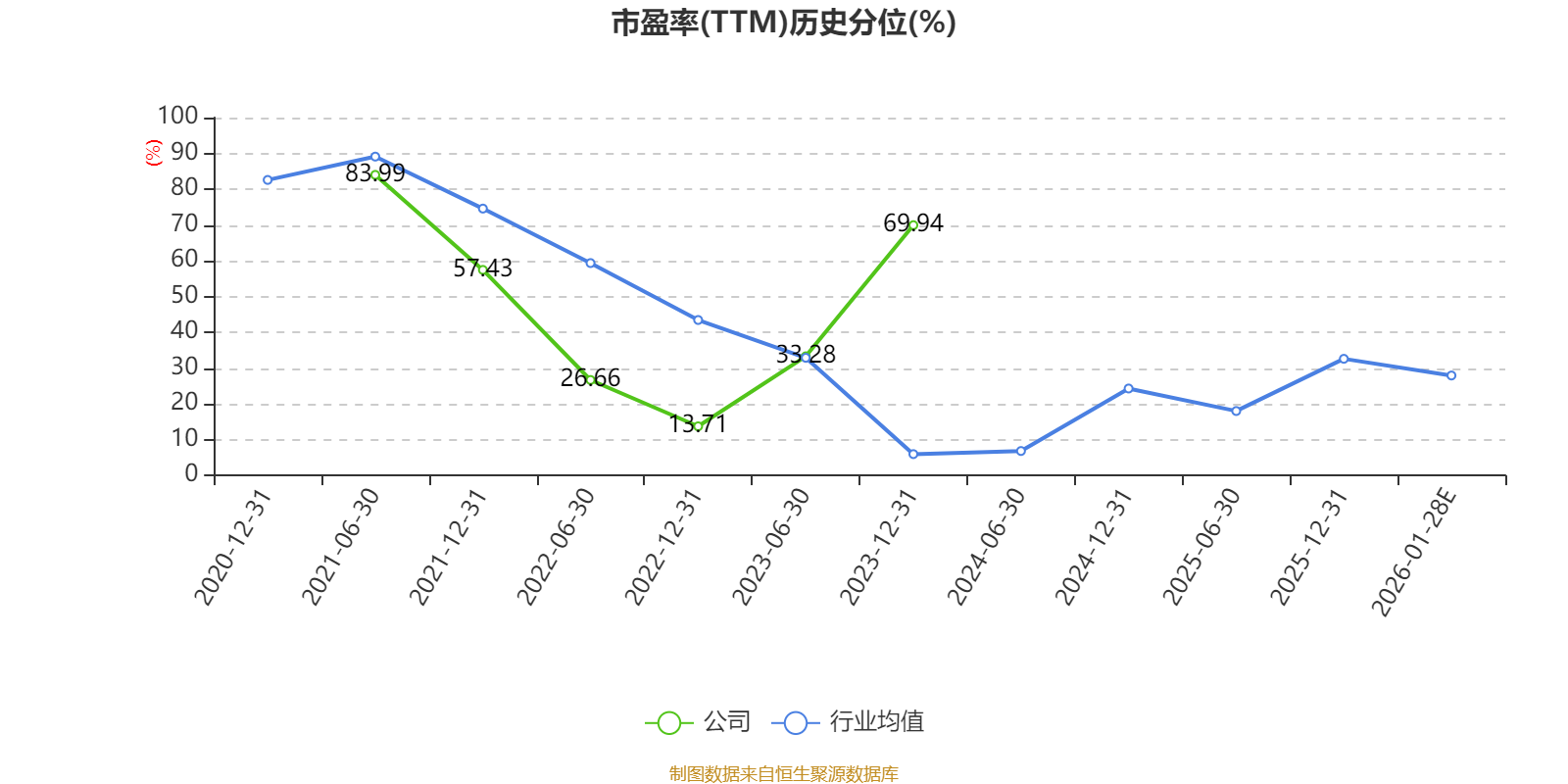 以本次披露业绩预告均值计算,公司近年市盈率(TTM)图如下所示: