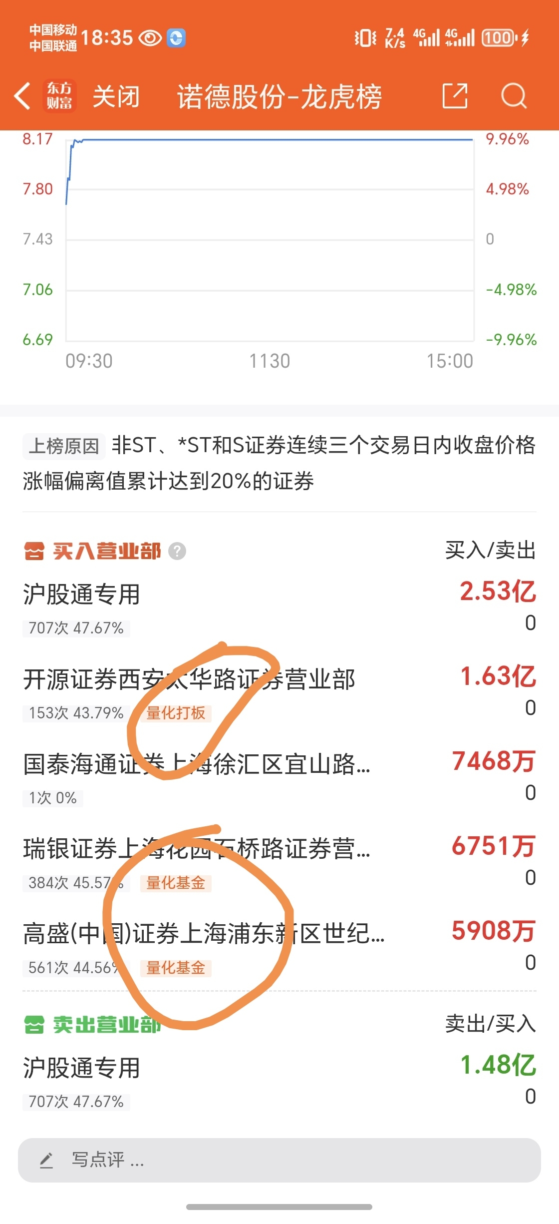 $诺德股份(SH600110)$ 都是量化操纵的,咱们散户玩不过量化,量化赚钱就跑,别被骗高位当接盘侠