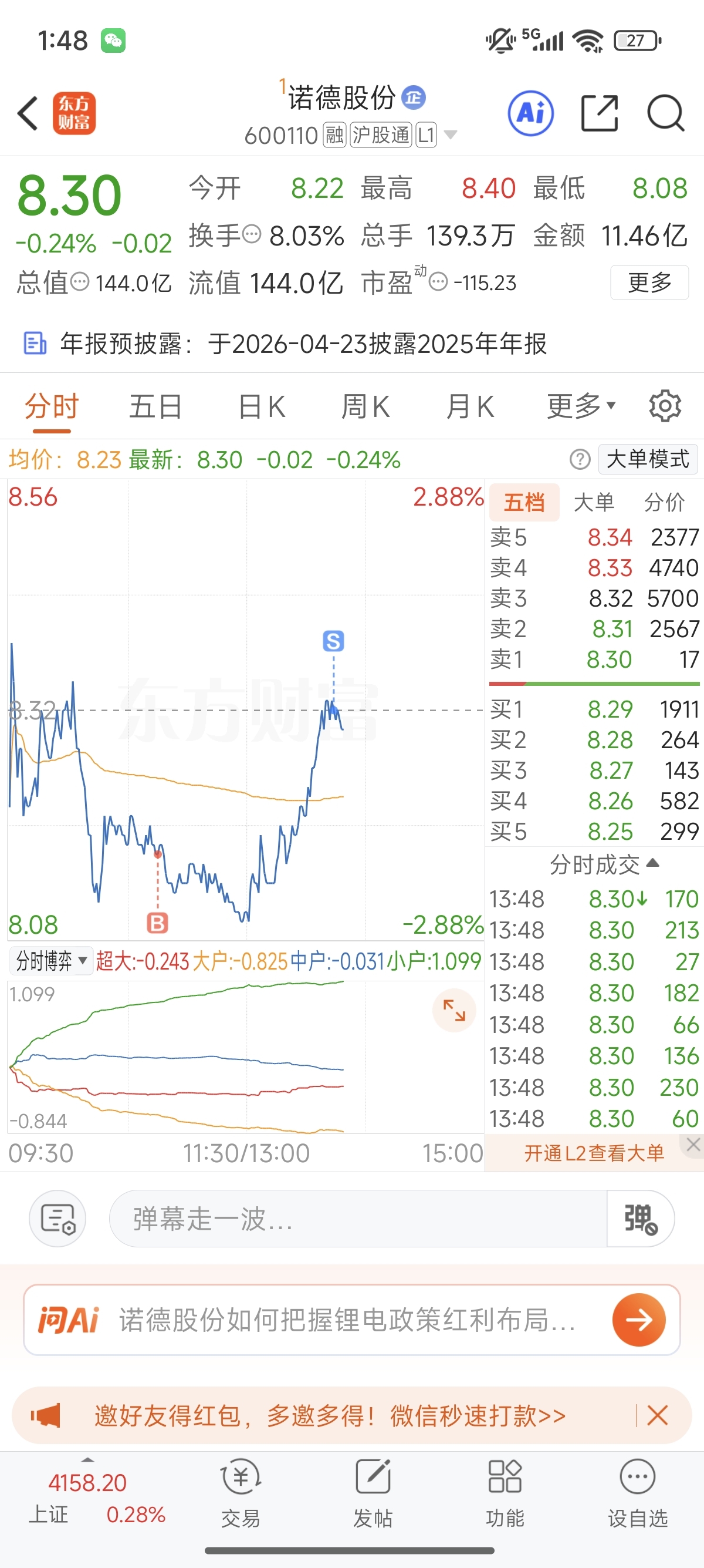 $诺德股份(SH600110)$ 不贪心,祝你们发财!