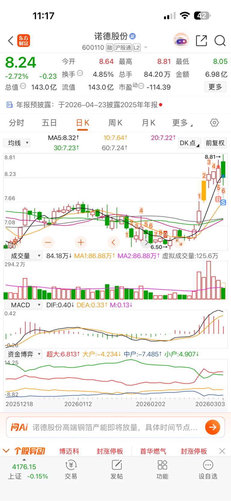 $诺德股份(SH600110)$ 愿赌服输