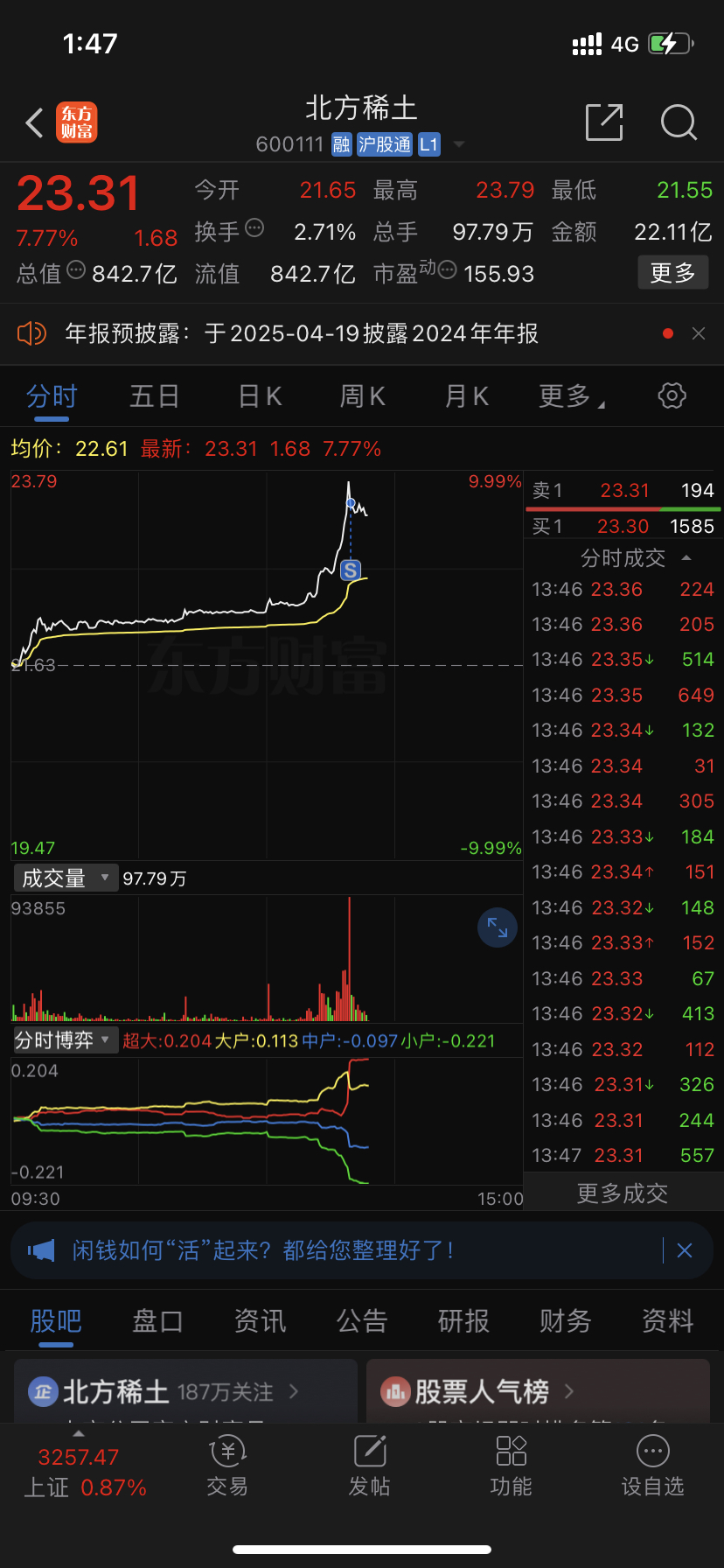 $北方稀土(SH600111)$ 挂涨停没有成交,只能重新挂单了