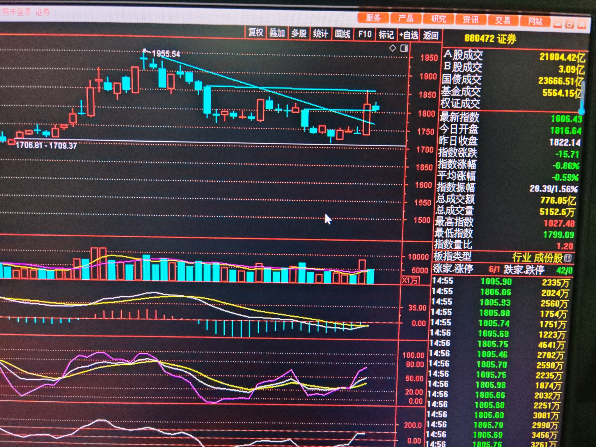 大盘能否冲关拔寨,取决于券商的态度。9月29号的阳线精准的打在9月3日阴K线1861点,9月30日回调再次精准回踩9月18日阴线1801点。