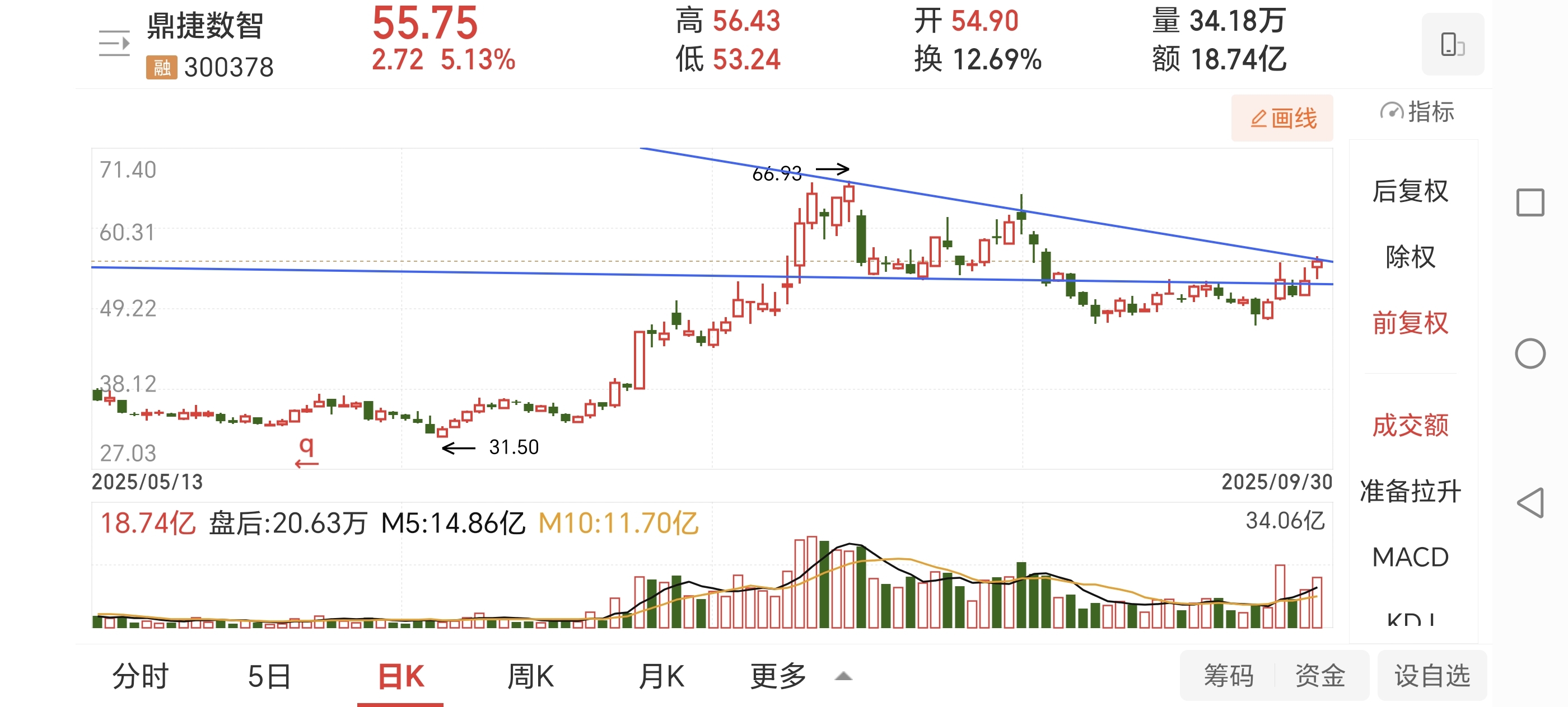 鼎捷数智,这个股票是头狼的老朋友,从40多入场一直涨到60多,这是一支百元股,甚至更高!头狼以前这么认为现在依然如此!