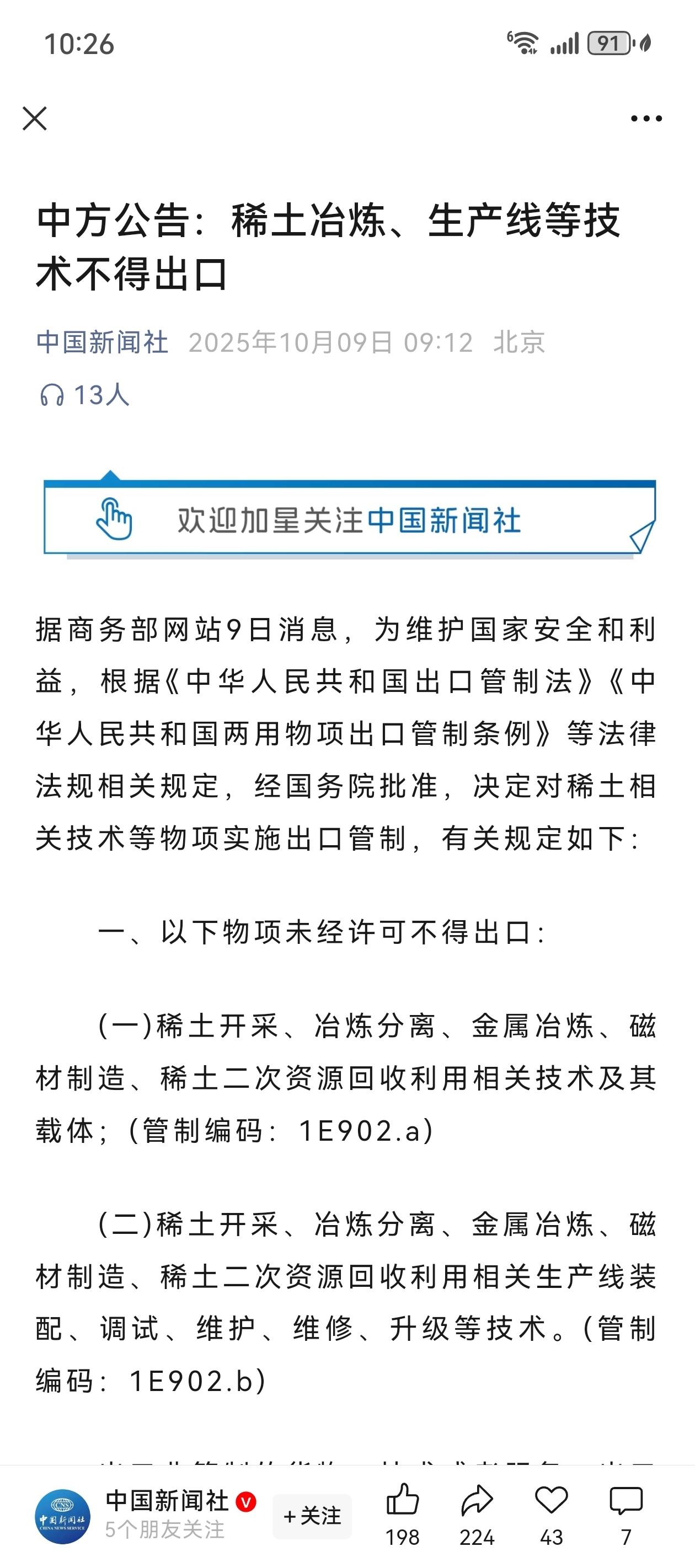 $北方稀土(SH600111)$ 中方公告:稀土冶炼、生产线等技术不得出口