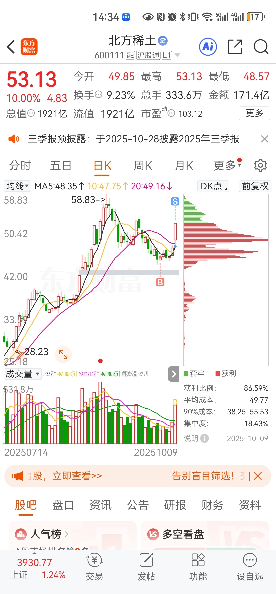 $北方稀土(SH600111)$ 看着自己的操作,久久不能平复