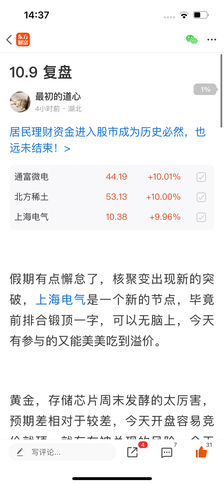 10.9复盘手上持有的通富微电,北方稀土都涨停了,通富一字就不说了,稀土上午有空