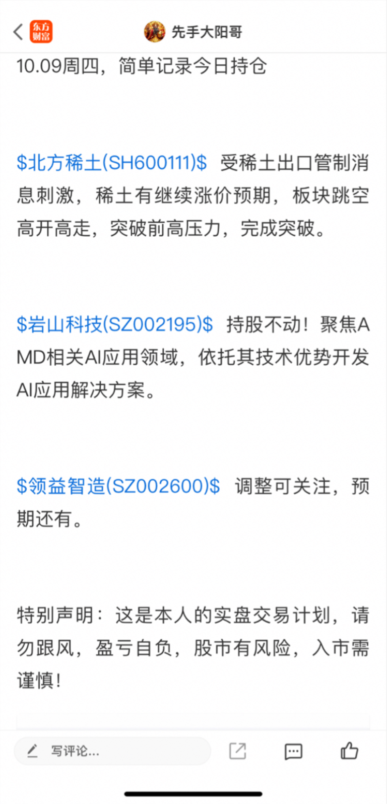温馨提示: 1.根据《证券法》规定,禁止编造、传播虚假信息或者误导性信息,扰乱证券市场;2.用户在本社区发表的所有资料、言论等仅代表个人观点,与本网站立场无关,不对您构成任何投资建议。用户应基于自己的独立判断,自行决定证券投资并承担相应风险。《东方财富社区管理规定》