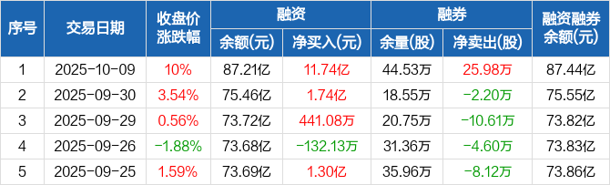 北方稀土:融资净买入11.74亿元,两市排名第三(10-09)
