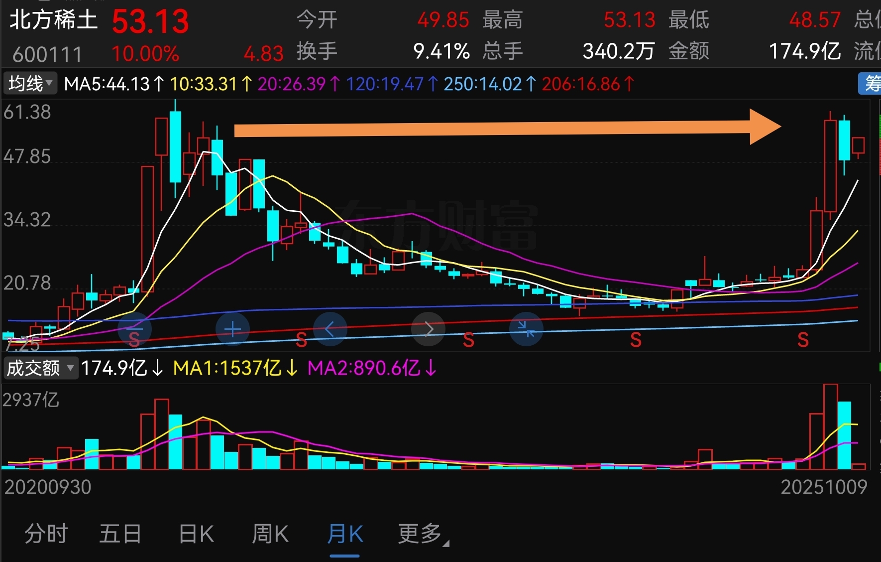 $北方稀土(SH600111)$ 炒就炒,还黄冕堂黄的自欺欺人,自己看,别说个股业绩,近五年稀土指数去对比一下。人家黄金五年涨两倍多是事实吧。即使只看技术面,今天十有八九乌云盖顶,信不?还想套路俺们追高