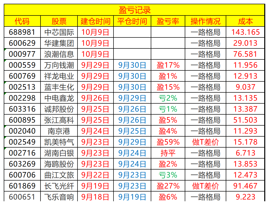 正所谓开弓没有回头箭,市场这里明显走出了放量突破的形态,所以短期只要这里不跌破趋势线,那么必然是以看多为主的,现在市场的争夺核心就在于,如果这波行情要启动,谁是龙头?核电?科技?还是贵金属?短期看,其实这三者都有可能,那么谁能走出来?有一个观察点,就是看今天和下周一的连板梯队上,谁的涨停家数多,这里只有找到核心启动方向,短线才会变得容易做起来,所以整个10月,我们的态度都是不悲观的,核心就是围绕龙头去做,而短期3~5天会把主要精力都放在找龙头和切换强势股上。