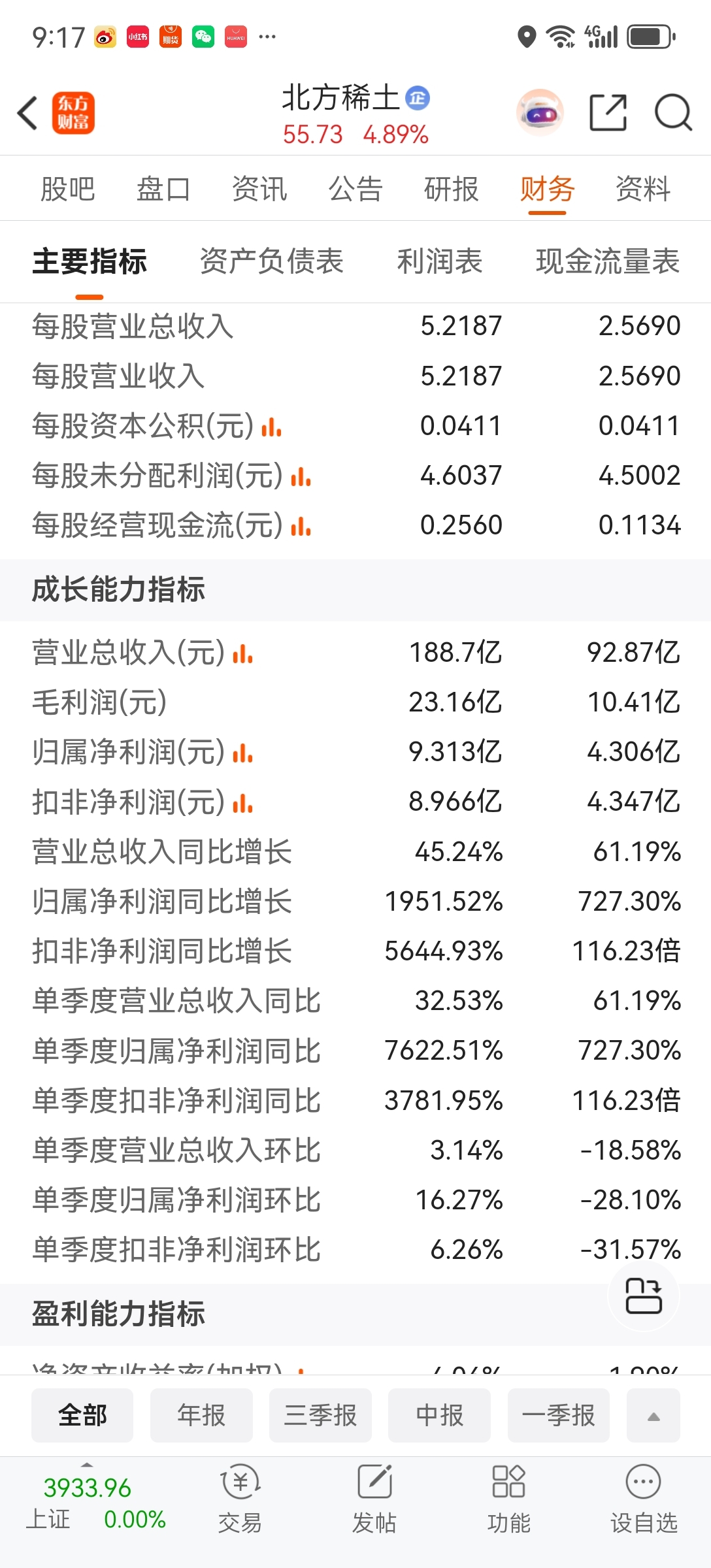 $北方稀土(SH600111)$ 三季报肯定几万倍涨幅