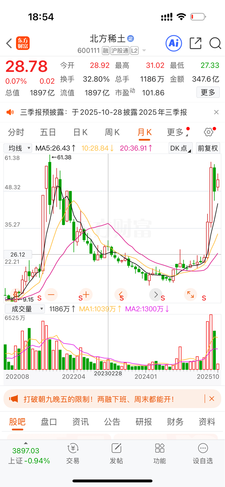 23年最贵时刻,股价才26元,目前涨价还达不到23年,不及预期,周一估计跌停52