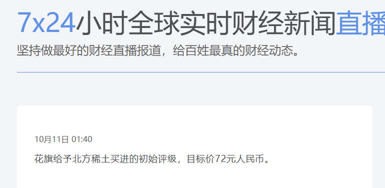 花旗给予北方稀土买进的初始评级,目标价72元人民币。