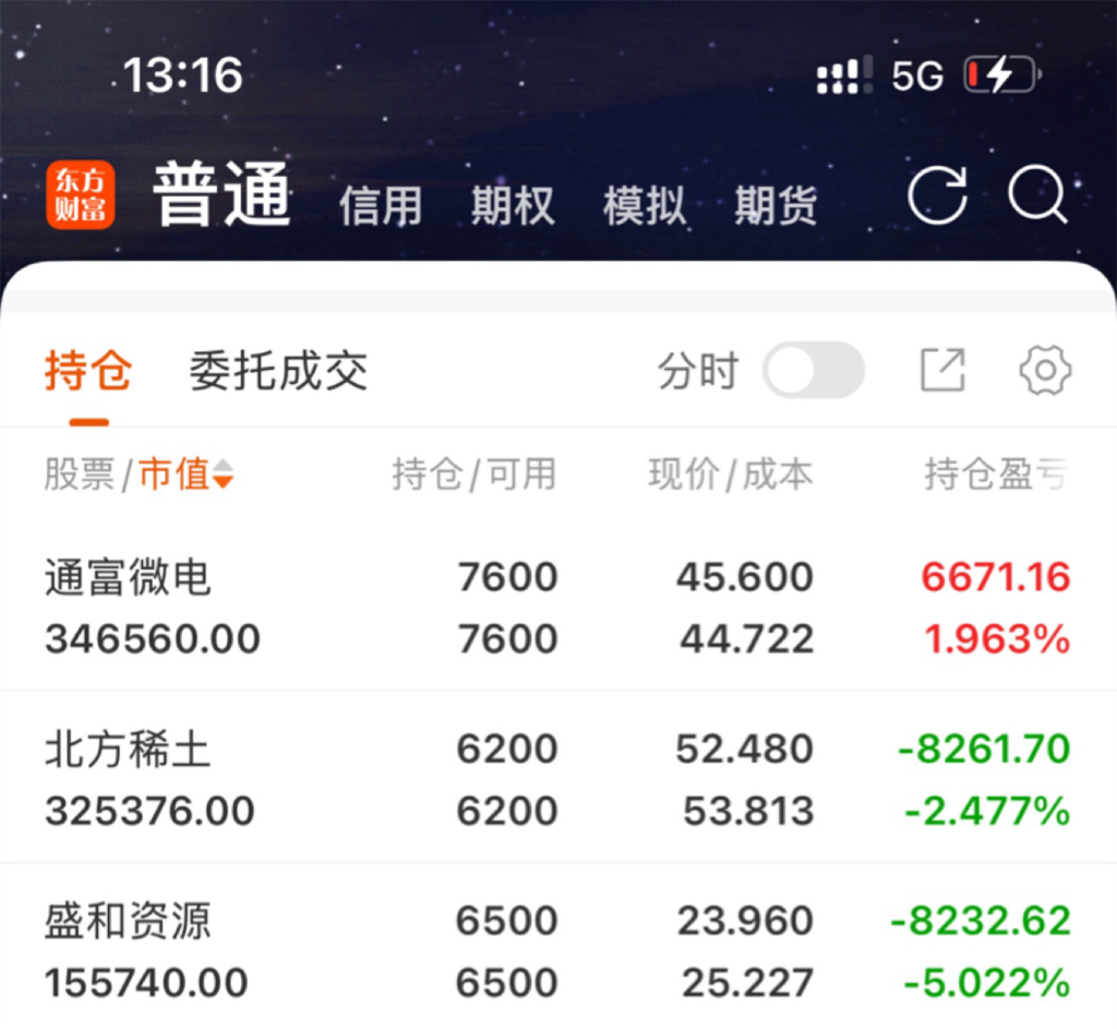 $北方稀土(SH600111)$ $盛和资源(SH600392)$ $通富微电(SZ002156)$ 周五虽然亏了亏了,主要在调整仓位,主要是建仓稀土,通富是加仓了(独立行情还没走完)。