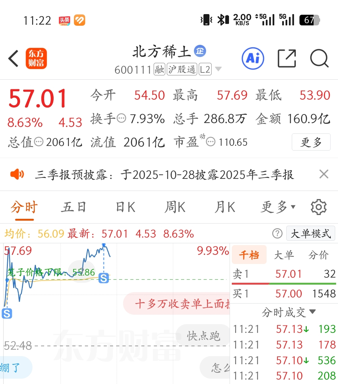 $北方稀土(SH600111)$ 先出一部分,留个一层,跌下来再来