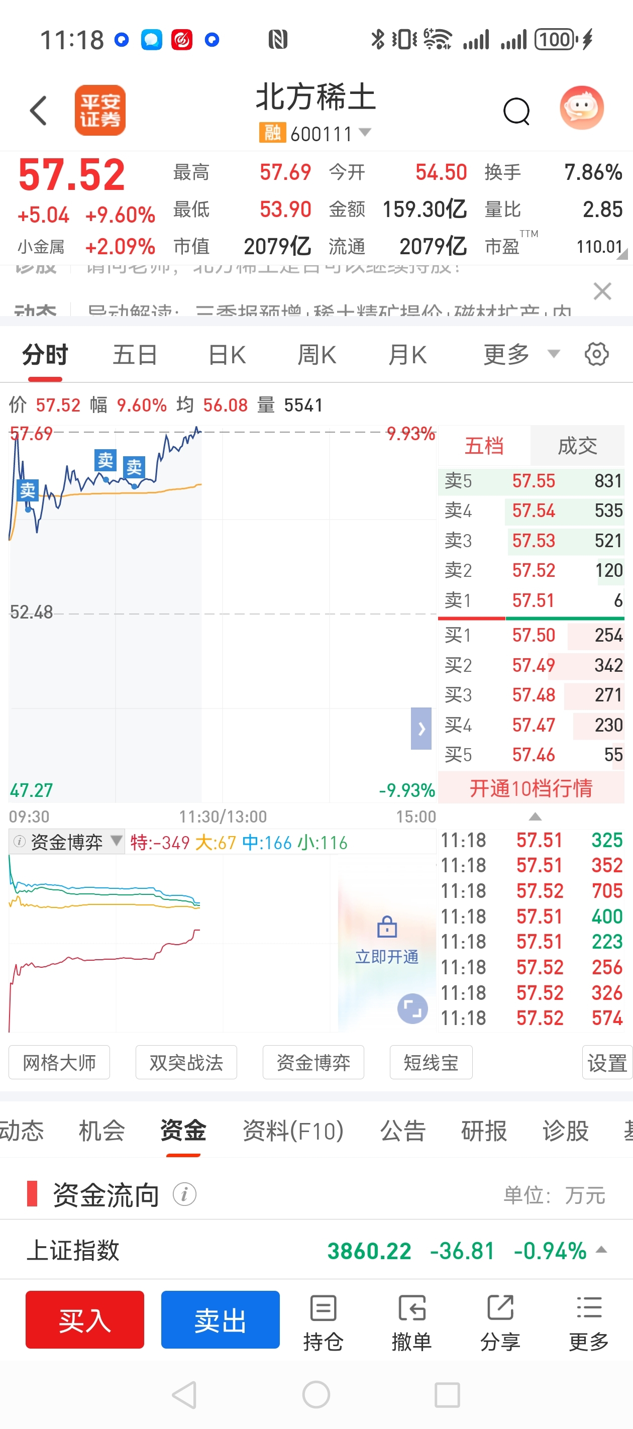 $北方稀土(SH600111)$ 哎,卖了他就涨