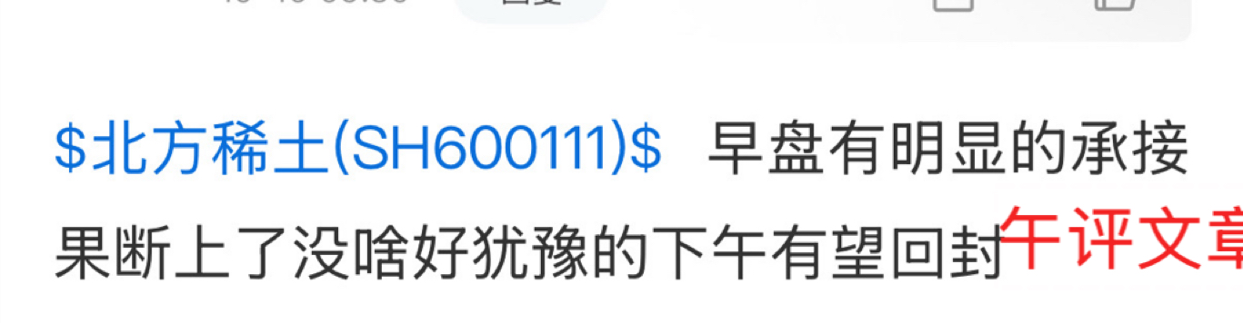 $北方稀土(SH600111)$ 怎么说午评马前炮再次认证了~实力永远是我最好的底气、在大环境不好的情况下 丝毫不影响咱们吃肉肉 有灰色很正常能马上调整心态继续盈利那就是实力!关注我你会发财的