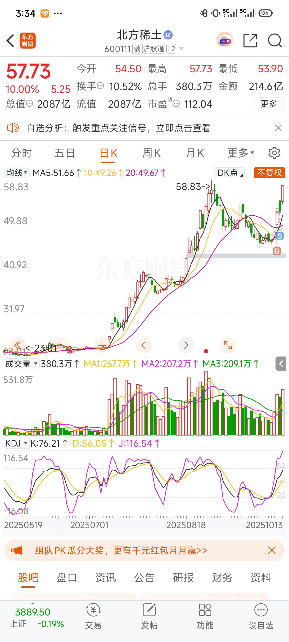 $北方稀土(SH600111)$ 想给自己两巴掌