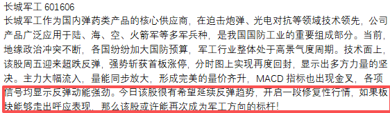 长城军工:作为国内弹药类产品的核心供应商,在迫击炮弹、光电对抗等领域技术领先,公司产品广泛应用于陆、海、空、火箭军等多军兵种,是我国国防工业的重要组成部分。当前,地缘政治冲突不断,各国纷纷加大国防预算,军工行业整体处于高景气度周期。技术面上,该股周五迎来超跌反弹,强势斩获首板涨停,分时图上实现再度回封,显示出多方力量的坚决。主力大幅流入,量能同步放大,形成完美的量价齐升,MACD指标也出现金叉,各项信号均显示反弹动能强劲。今日该股很有希望延续反弹趋势,开启一段修复性行情,如果板块能够走出呼应表现,那么该股或许能再次成为军工方向的标杆!