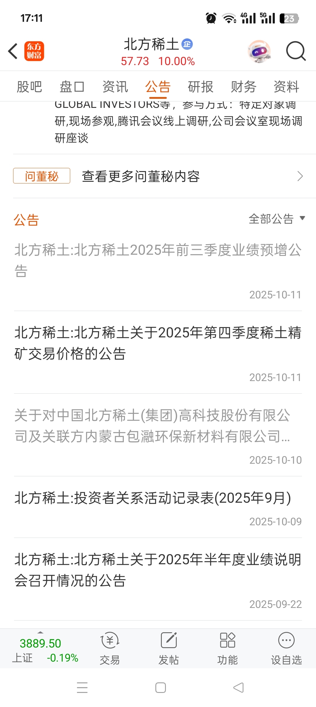 $北方稀土(SH600111)$ 那些说盘后被监管警示的,自己去看看,10号的公告,10号已经发过了,都知道。股价也早已经反应过了,现在再来唱空,无非是主力拿便宜筹码的把戏而已