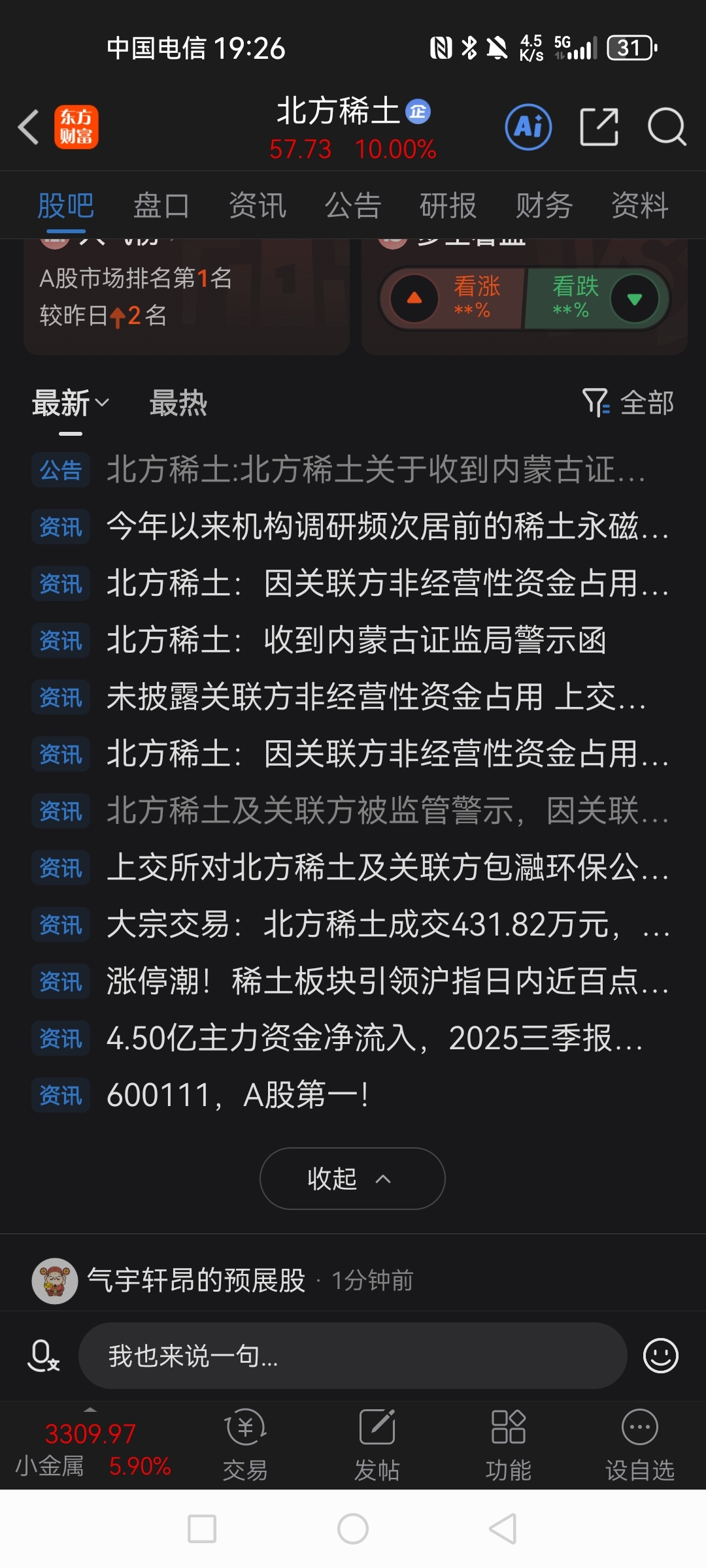 温馨提示: 1.根据《证券法》规定,禁止编造、传播虚假信息或者误导性信息,扰乱证券市场;2.用户在本社区发表的所有资料、言论等仅代表个人观点,与本网站立场无关,不对您构成任何投资建议。用户应基于自己的独立判断,自行决定证券投资并承担相应风险。《东方财富社区管理规定》
