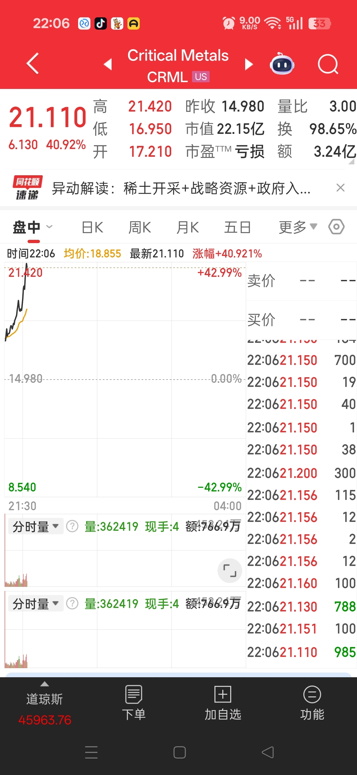 $北方稀土(SH600111)$ 美股稀土暴涨啊,握草
