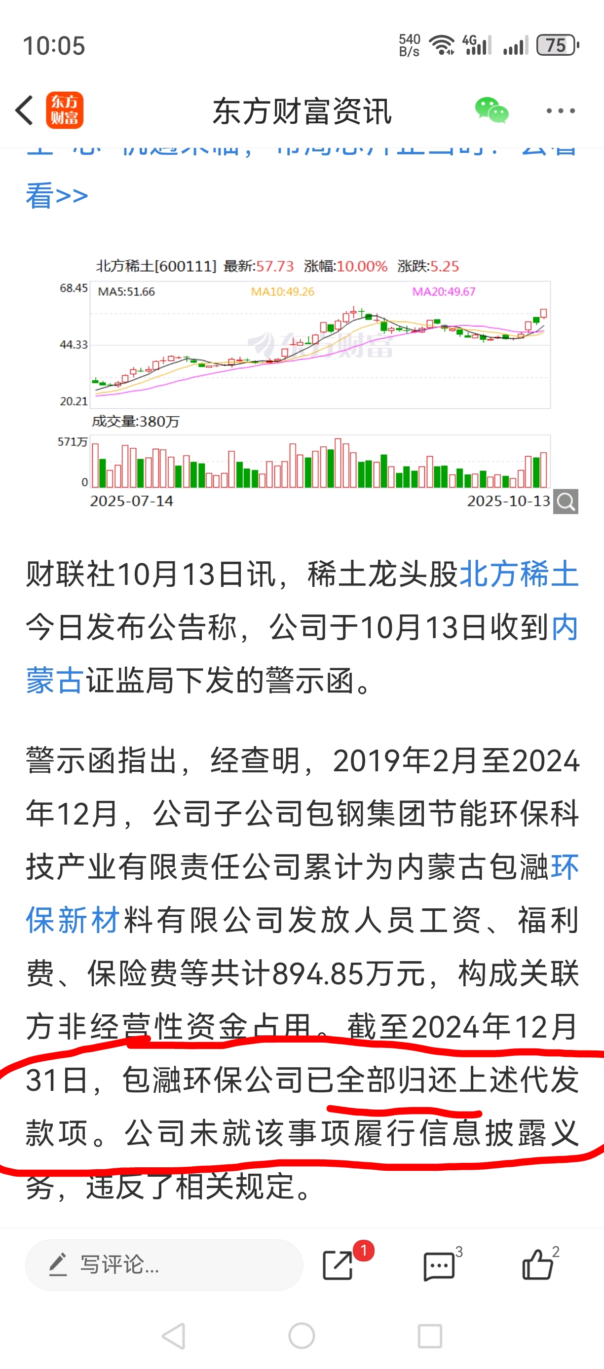 $北方稀土(SH600111)$ 这么点事,哪个公司没做错账或工作失误,而且已经整改完成的事还拿来说,又不影响业绩,外围稀土暴涨,北稀不会因这几百万有什么影响,明天照样高开高走!!!