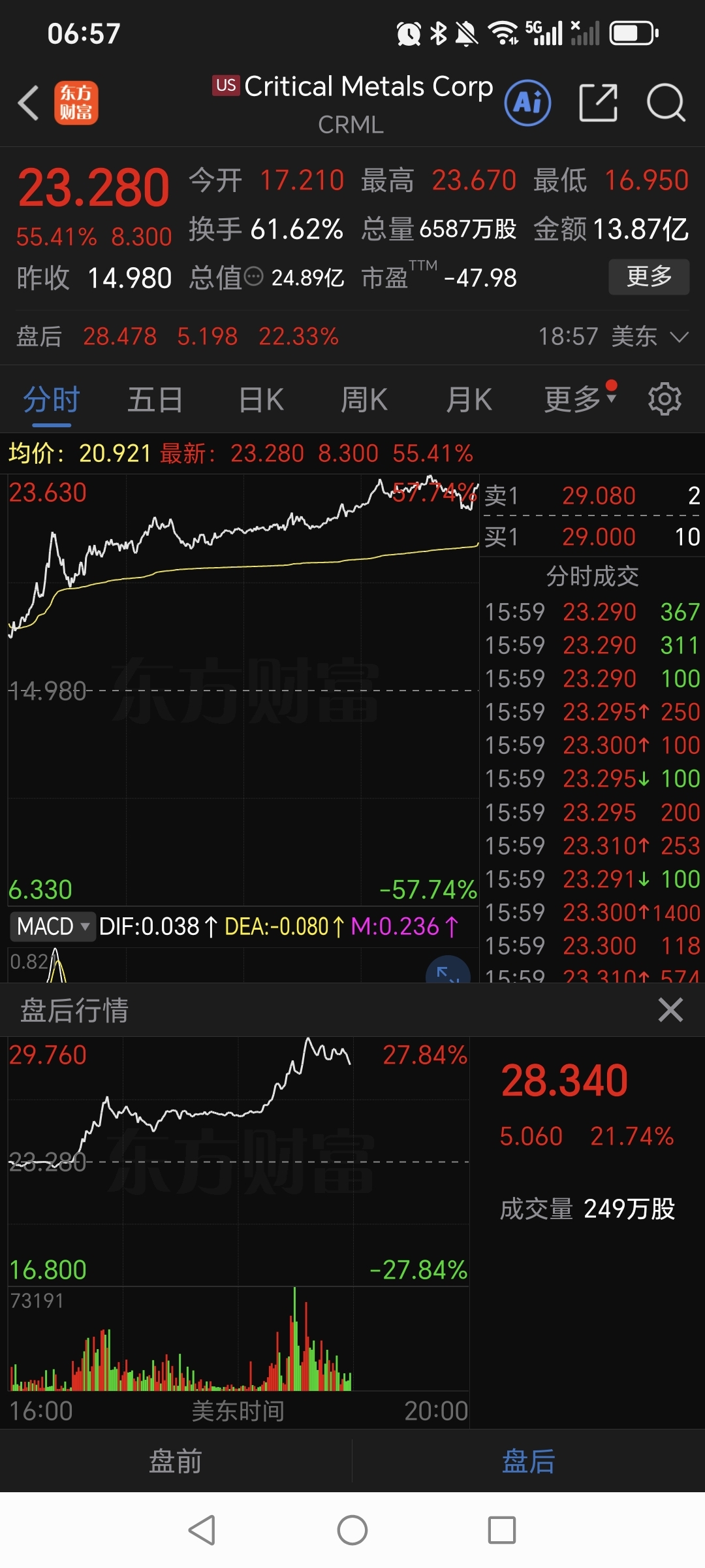 $北方稀土(SH600111)$ 。稀土盘前大涨,盘后接着大涨