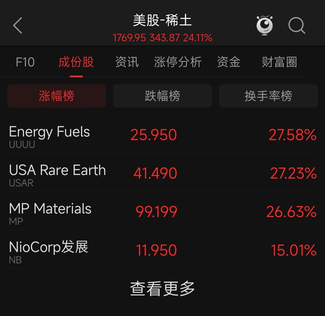 美股稀土大涨超20%,稀土正式进入战略资源竞赛环节,是双方资本的实力较量,已经不