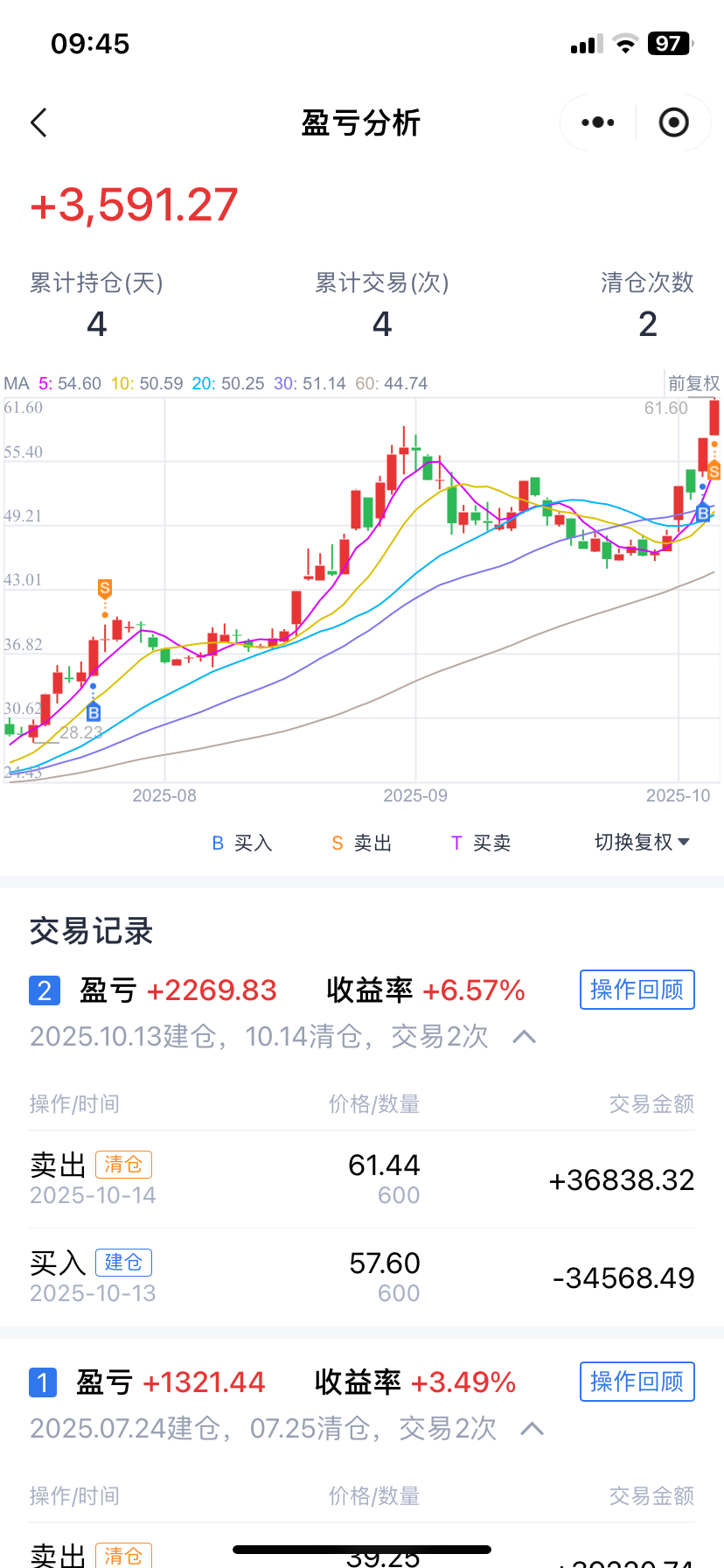本来想挂卖单7个点的、想想还是见好就收了、最后61.44出了、不知道下午会不会涨