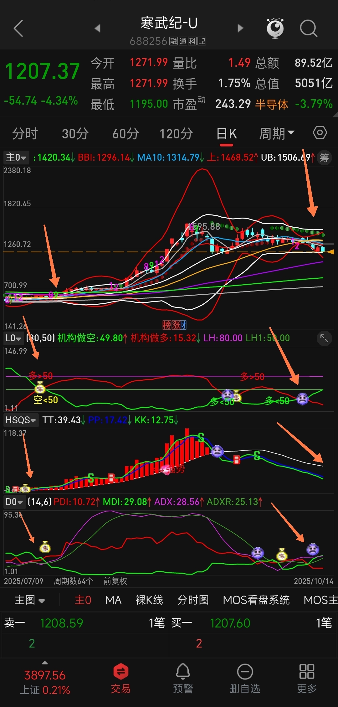 $北方稀土(SH600111)$ $中国稀土(SZ000831)$ 恕我直言,部分高位AI、半导体、新能源股的涨势已经消失了,没有出现红色趋势柱之前有的只是下跌或调整。
