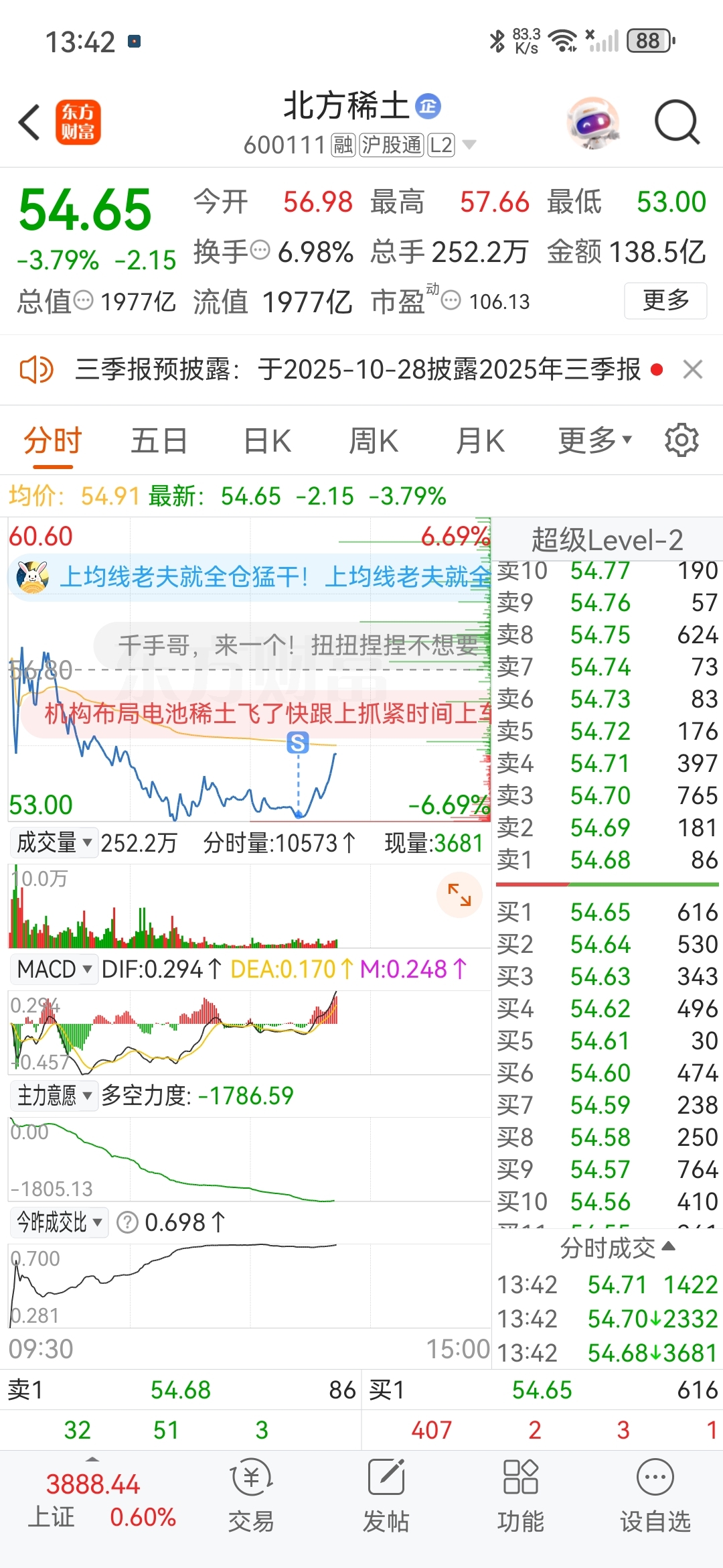 $北方稀土(SH600111)$ 无语,扛了半天,卖了就拉
