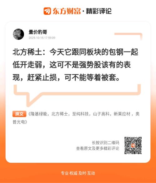 //@量价豹哥 :北方稀土:今天它跟同板块的包钢一起低开走弱,这可不是强势股该有的表现,赶紧止损,可不能等着被套。 $北方稀土(SH600111)$