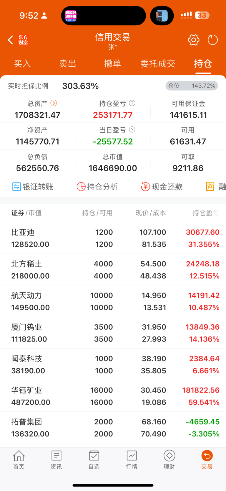 $北方稀土(SH600111)$ 这是我实盘第一天,聊聊今天的盘面,今天有色金属调整剧烈,盘中一度下跌5%以上,不必恐慌,有仓位的可以跟着主力做t,每天保持适度交易,可以增加自己的盘感,也让自己交易胜率更高,厦钨减了半仓,是因为想再观察下企稳位置。北稀今天跌破5日线,可能短期很难突破61块高点,大概率会横盘震荡,这时候就是做t的最好时机。知行合一,与君共勉。
