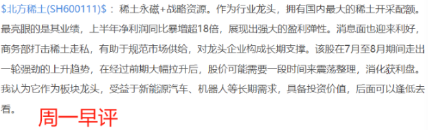 $北方稀土(SH600111)$:稀土永磁+新能源上游+机器人材料,这家公司在中国稀土行业有着特殊的地位,掌控着全球最大的白云鄂博稀土矿资源,其开采配额在国内占据着相当高的比例。作为行业龙头,优势主要体现在资源成本上,稀土的价格波动对业绩影响很大,而稀土本身又受新能源车、风电和机器人这些下游产业需求以及调控的双重影响,所以它的业绩弹性大,周期性也比较明显。这只股票最近两个交易日处于冲高回落后的下跌过程中,但中期却仍在上涨的趋势中。因为昨天整体指数上还是反弹的,我打算继续持仓观察,稀土作为战略资源,其长期价值还是值得期待的,只是需要点耐心陪伴它度过震荡期。