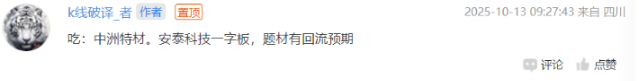 $中洲特材(SZ300963)$:核电+特种焊材+军工材料,公司专注于高技术壁垒的特种材料领域,产品用在一些苛刻的工作环境里,比如核电站的领域公司的这种特种材料就有供货。核电板块昨天分歧加剧,尾盘有中国核建反包拉出烂板涨停,今天这里继续观察一下,如果板块不能继续回流走强的话那么今天中洲的话要考虑止盈了。