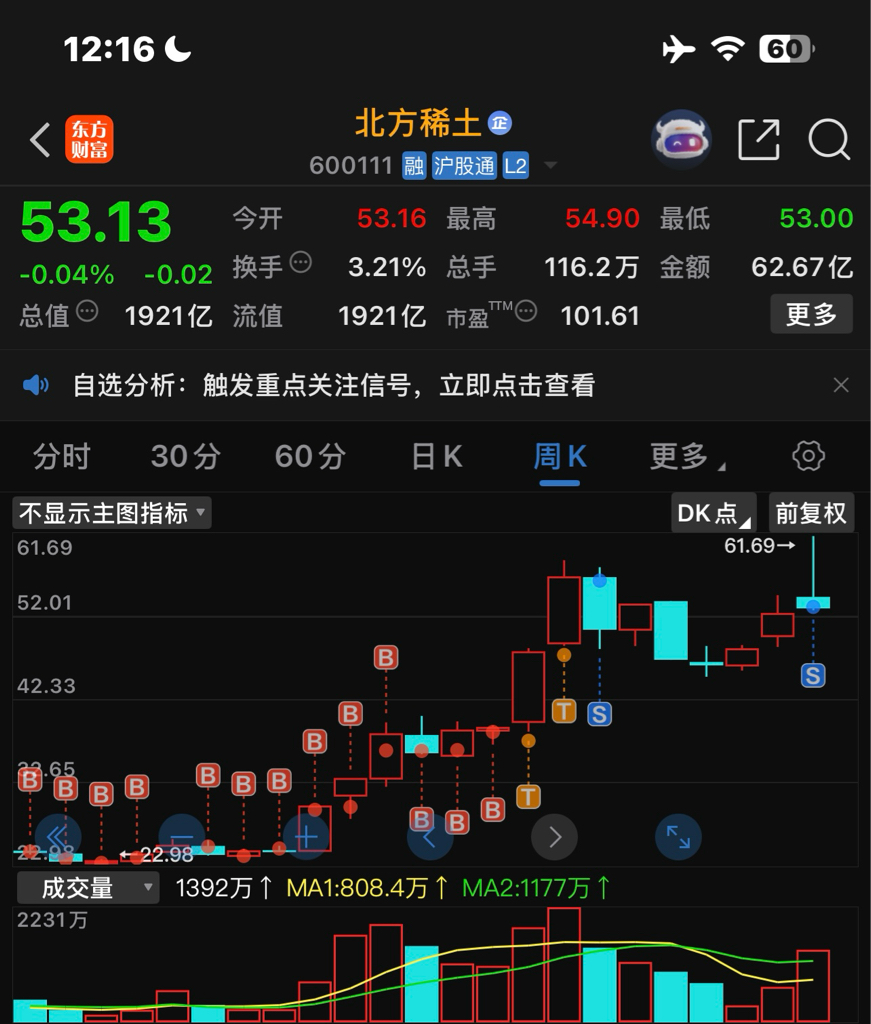 $北方稀土(SH600111)$ 今天把底仓都卖了!好不留恋!哈哈哈哈哈