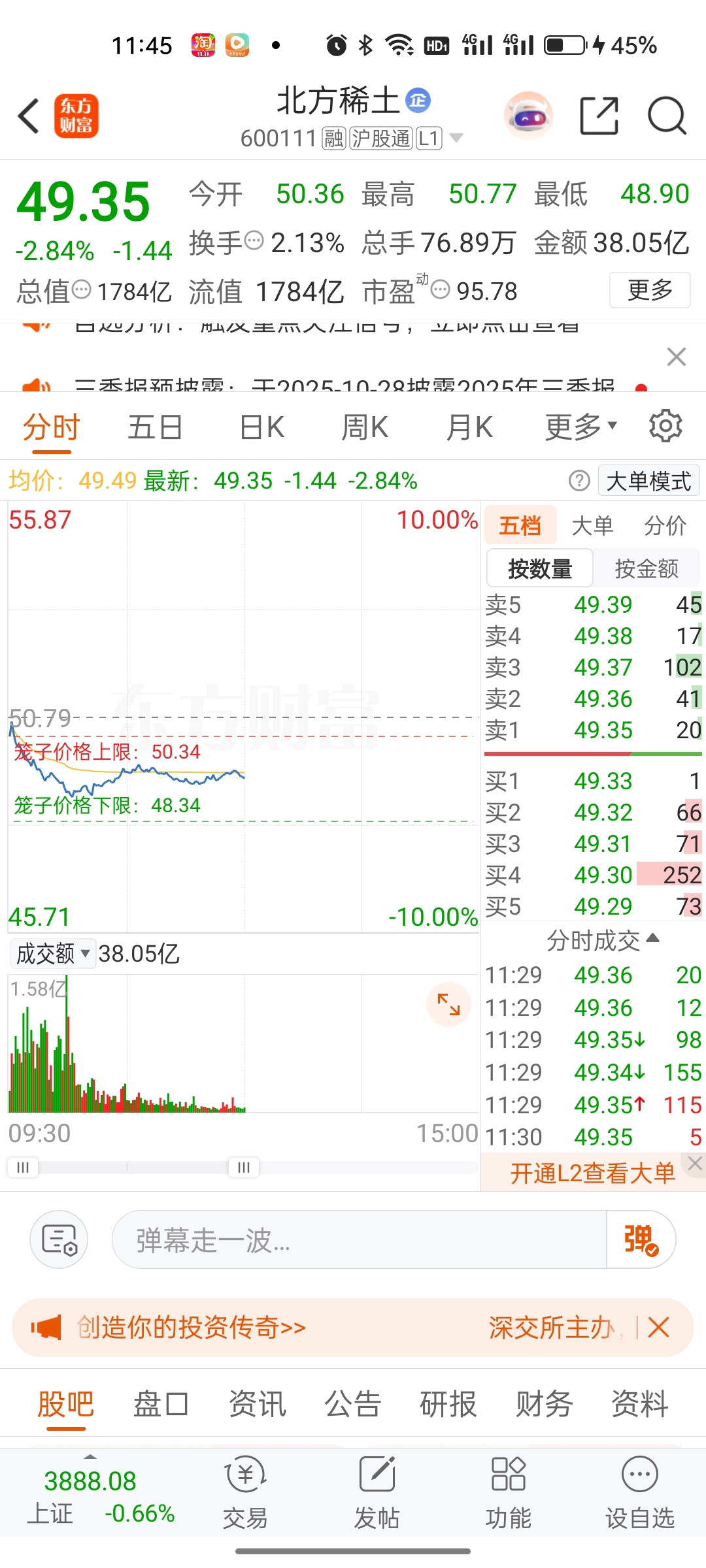 北方稀土,如果下午跌到48.53附近,那我毫不犹豫清仓黄河...