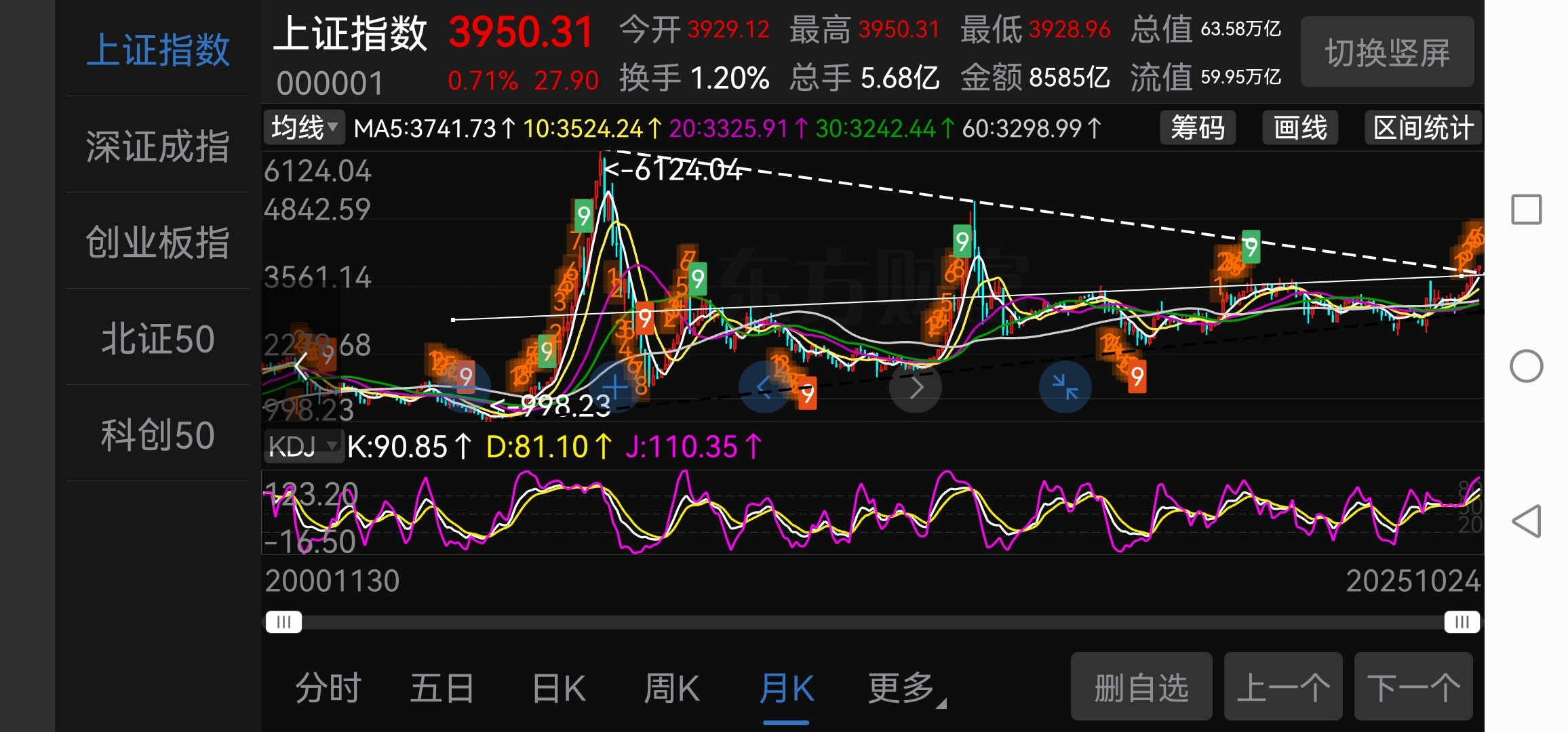 上证指数已经冲过两道压力线,短线有可能冲过4000点到4180点左右,然后就是向下调整到3900点左右。也不排除4000点见短期顶部回调到3600点,下周见分晓。保持好心态还是要迎接回调。睡觉等待。