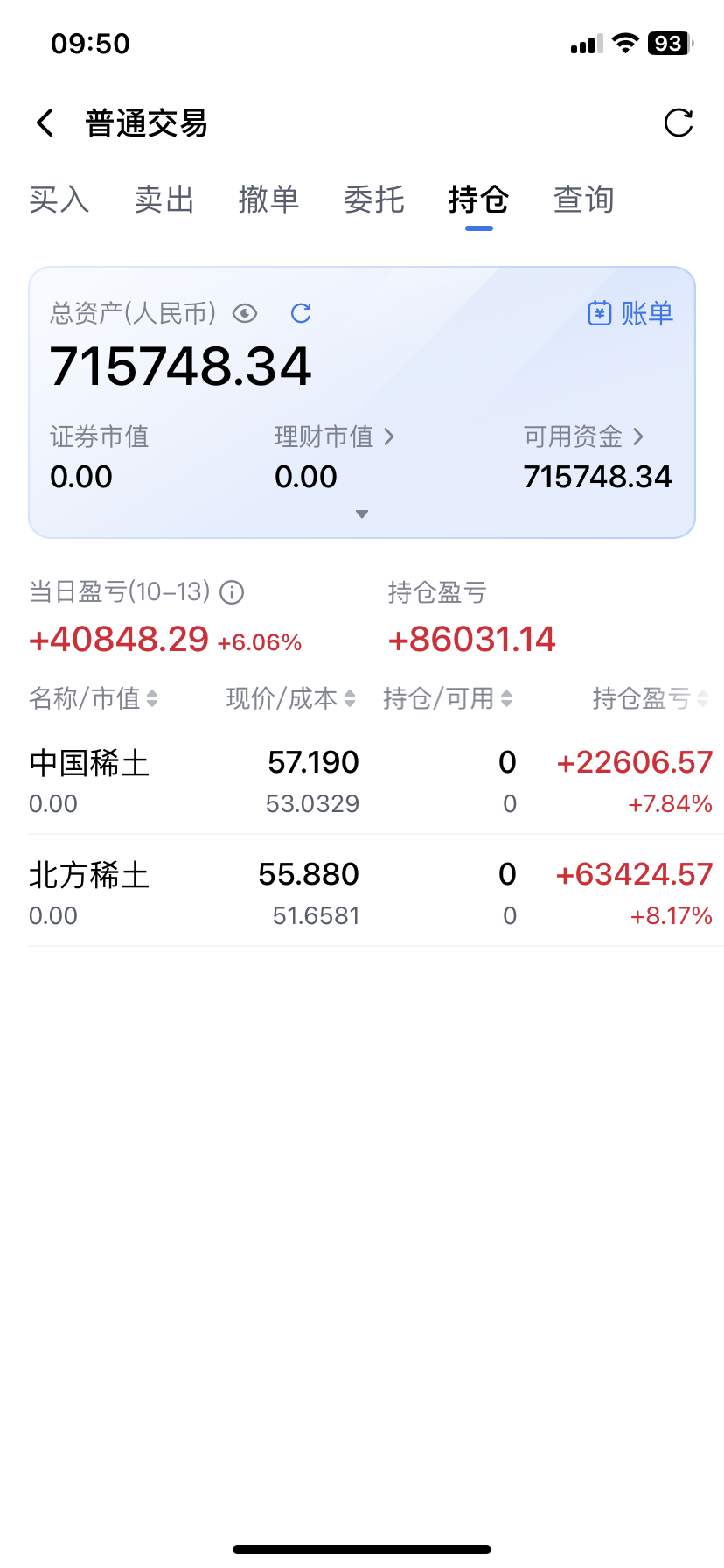 十月国庆节期间买北方稀土和中国稀土4天赚了8万多元,出来后将本金全部退出,只留下