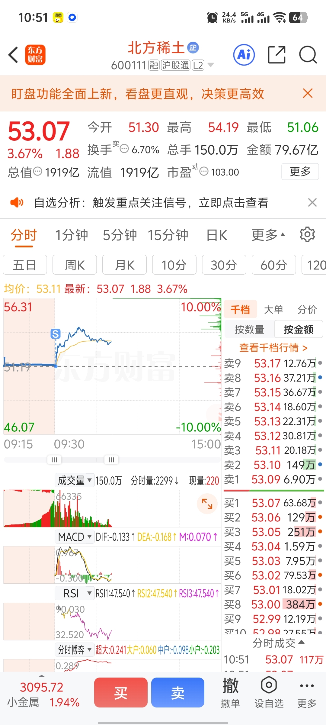 $北方稀土(SH600111)$ 今天都没赚到,总共才赚了五六个点