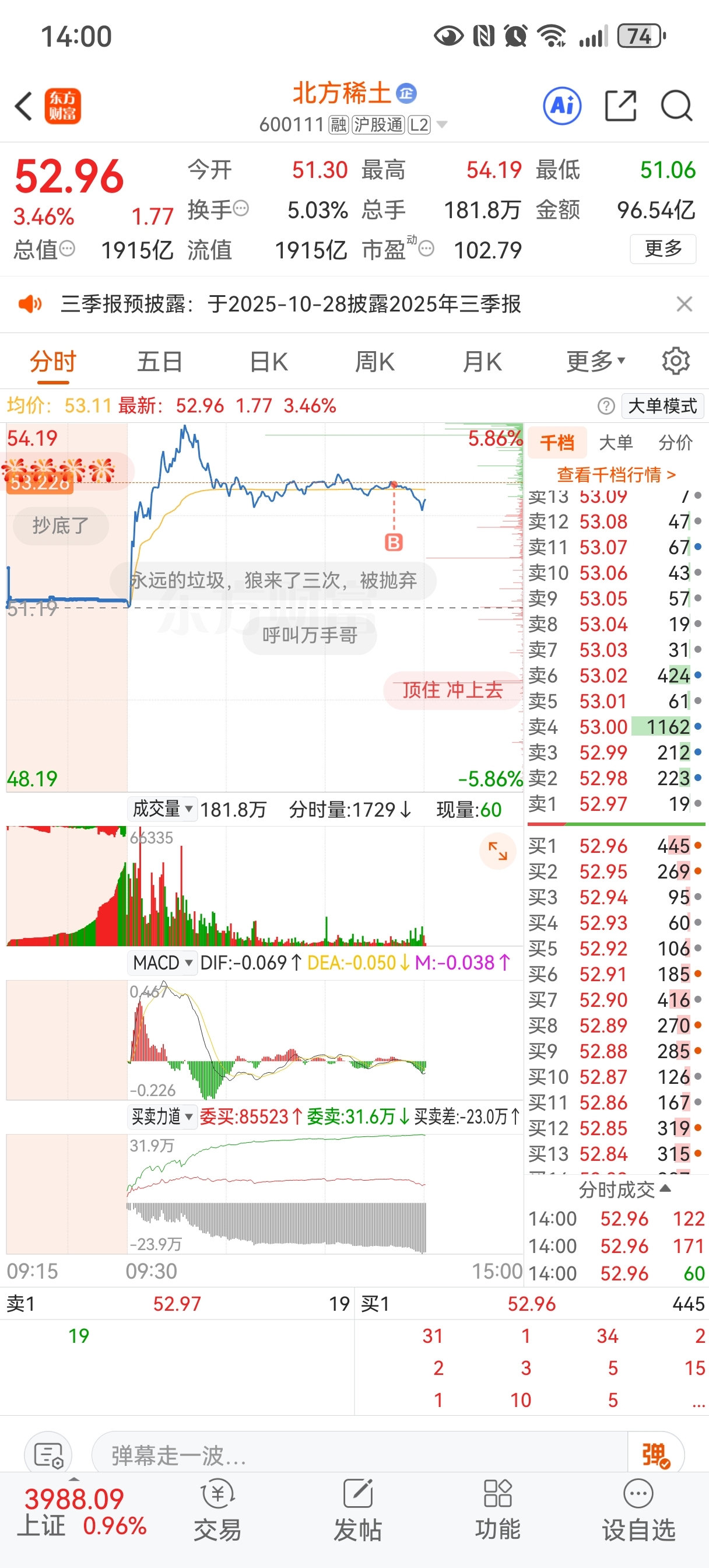 $北方稀土(SH600111)$ 兄弟们怪我,我以为他震荡够了该往上冲了!