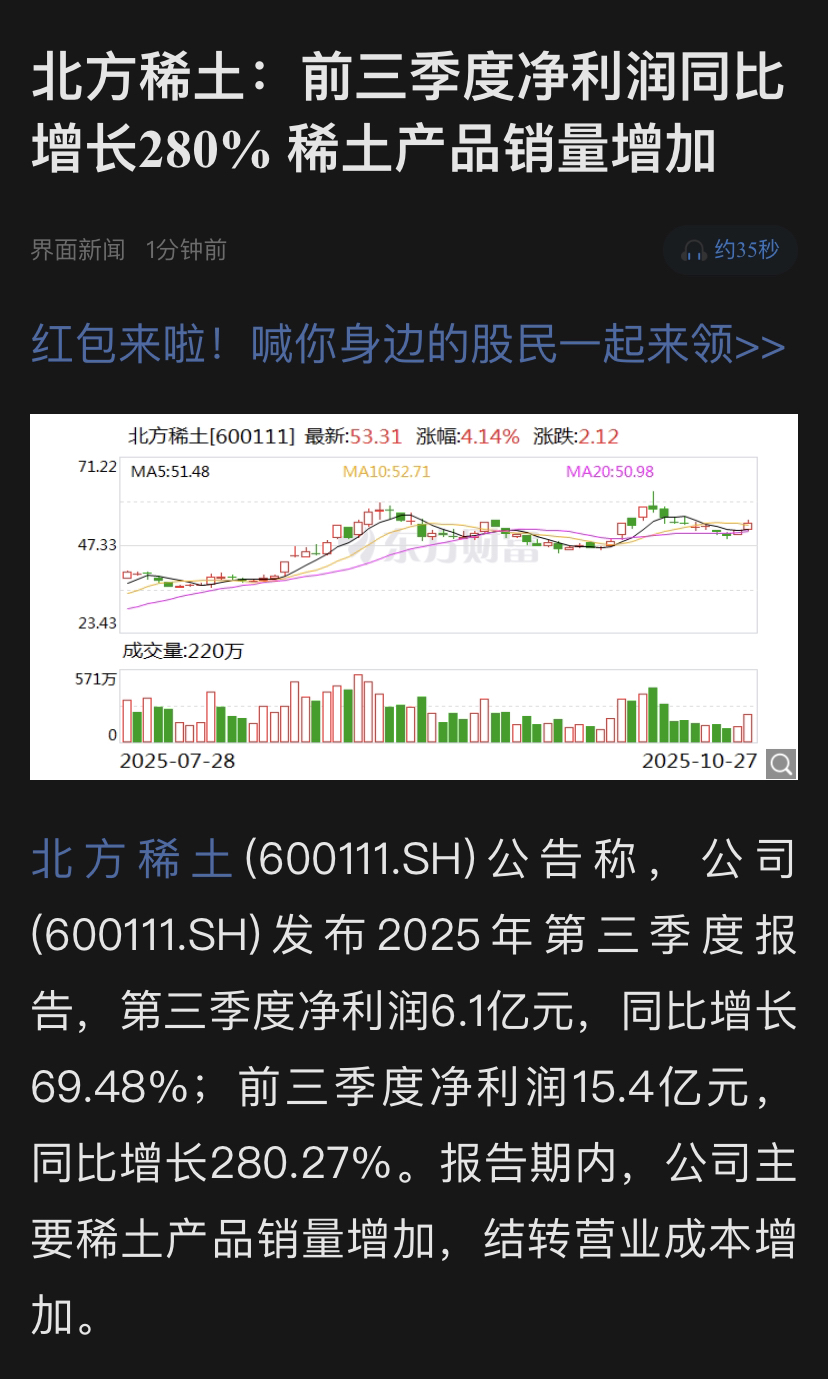 $北方稀土(SH600111)$