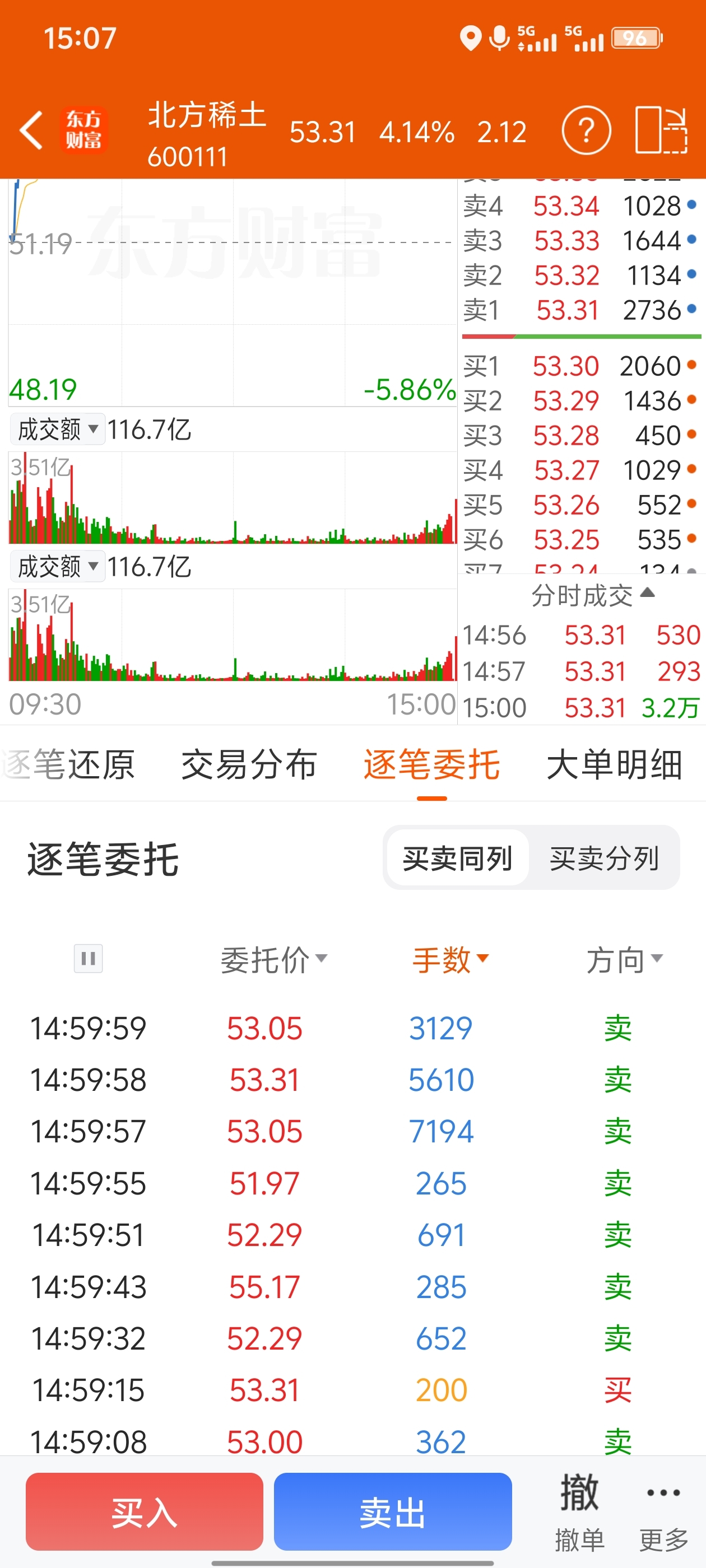 $北方稀土(SH600111)$ 昨天就说了,尾盘竞价这么多大单砸,今天危险了,但是有一个好消息大盘上4000点了,坏消息今天这里还跌3个点