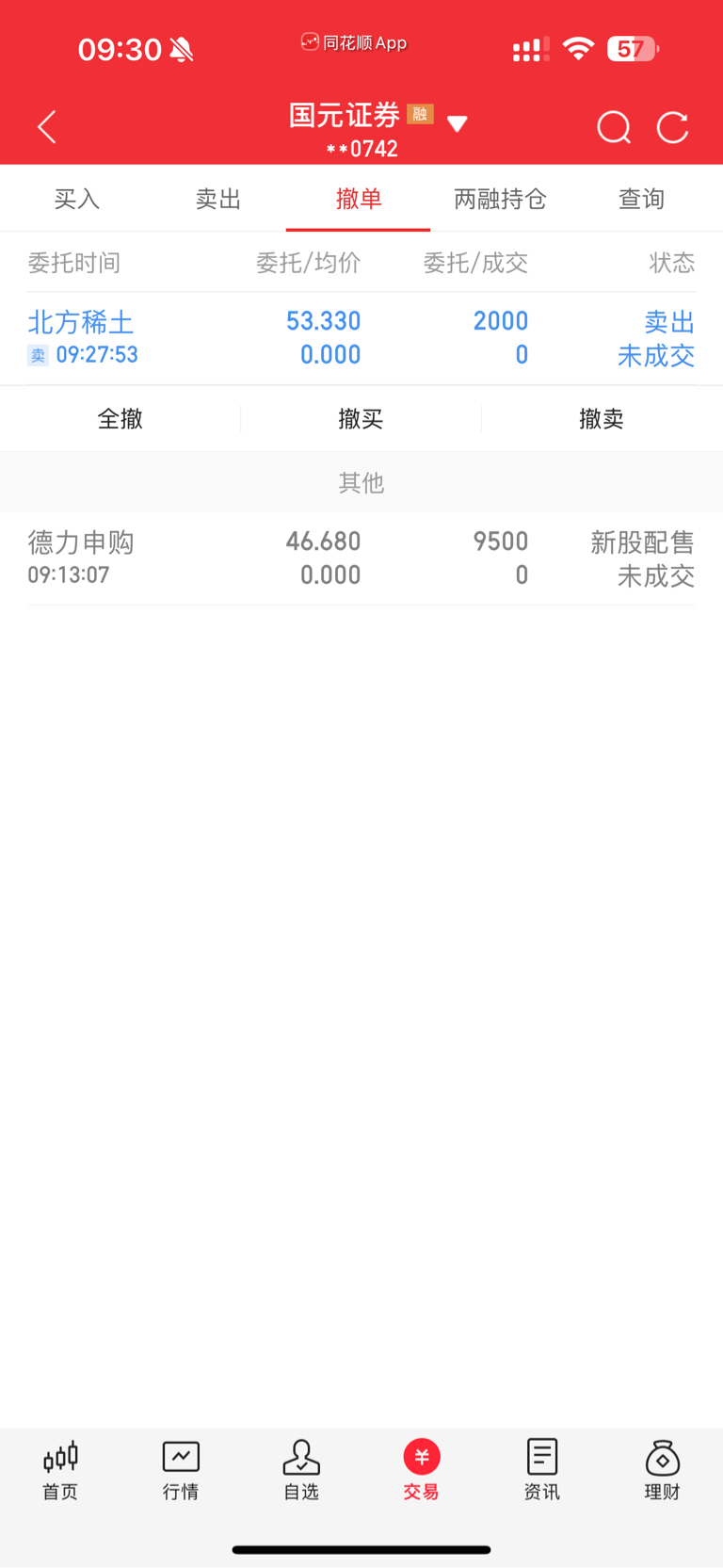 $北方稀土(SH600111)$ 9电27德卖单,竟然不给成交,太假了