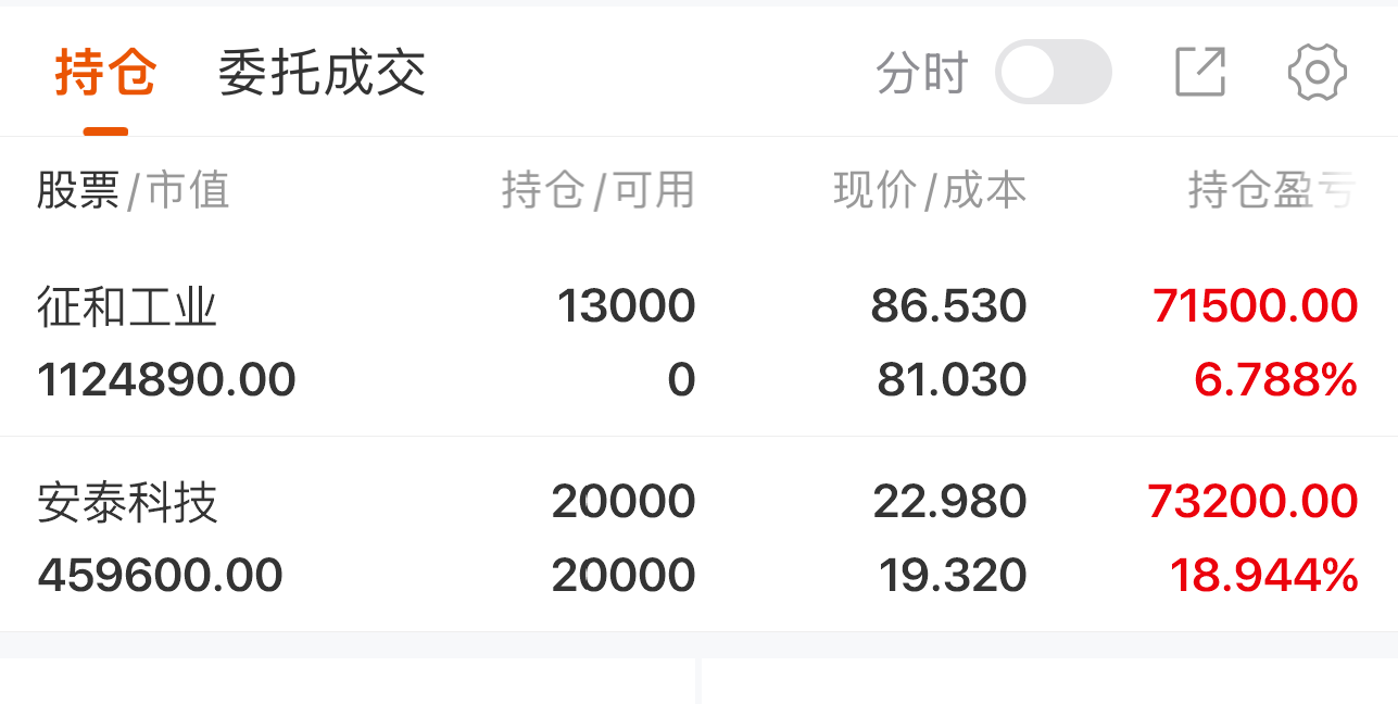 昨天的安泰科技连板了,今天进的政和工业也涨了今天就这样吧,非常满意了