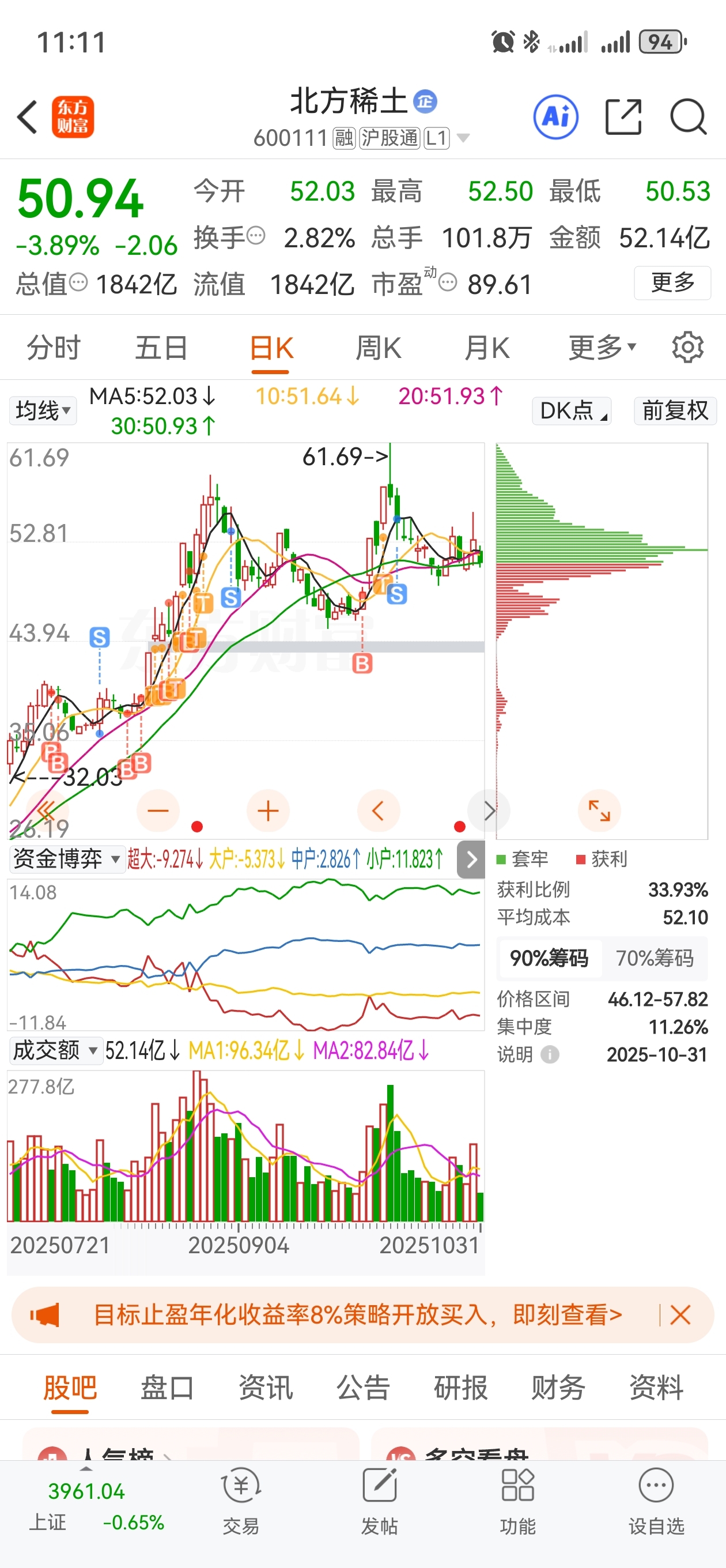 $北方稀土(SH600111)$  等你下来,还没跌到位