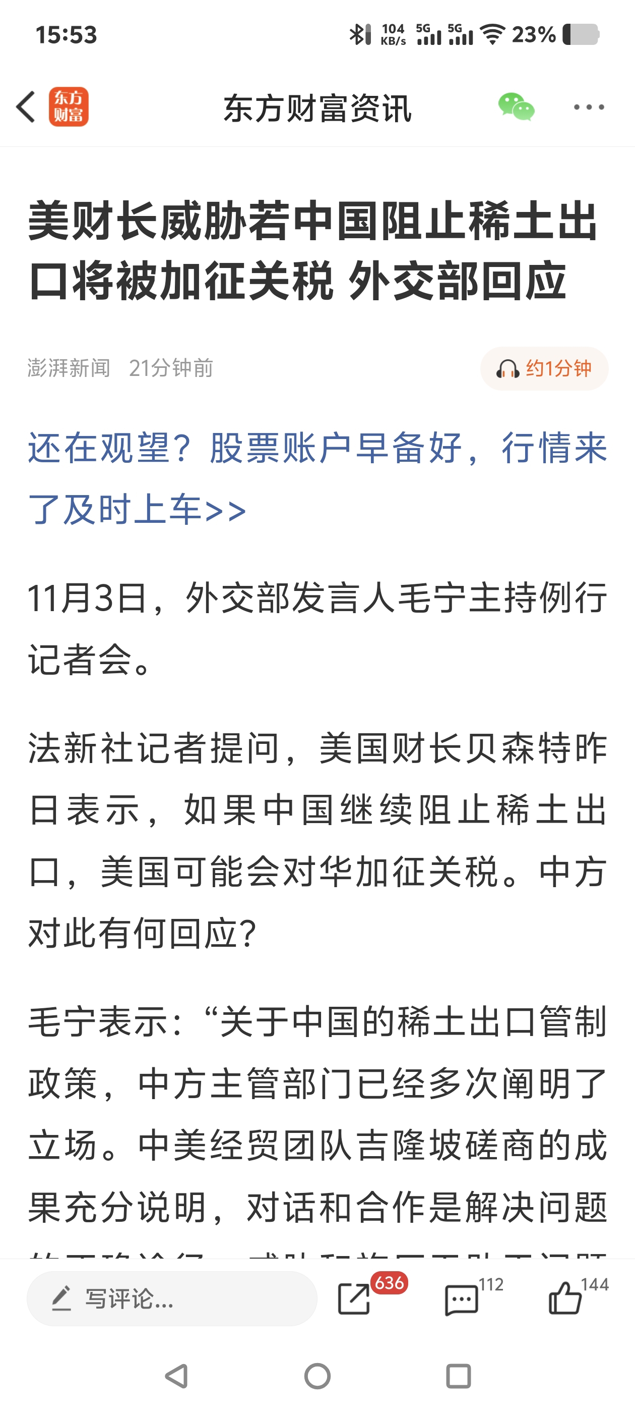 $北方稀土(SH600111)$ 美国佬又反常明天能涨了吗??