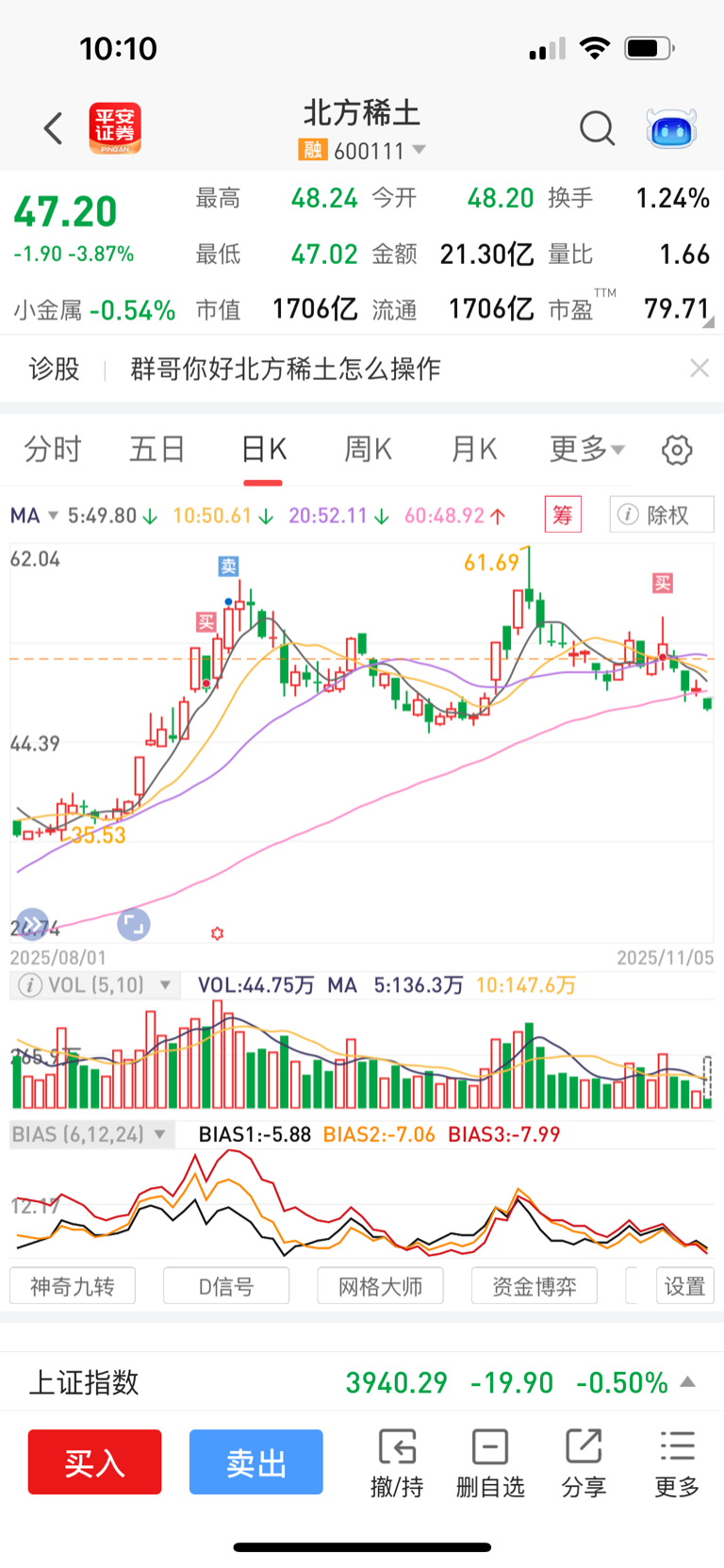 $北方稀土(SH600111)$ $金力永磁(SZ300748)$ 生活处处是意外,前几天集合竞价察觉到稀土异动梭哈了当天低开高走冲劲挺好的还以为自己要悟道了要发达,结果就是拿着套了吃面根本吃不完,真是没办法呀
