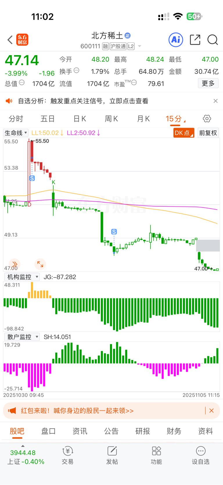 $北方稀土(SH600111)$ 主力疯狂出货